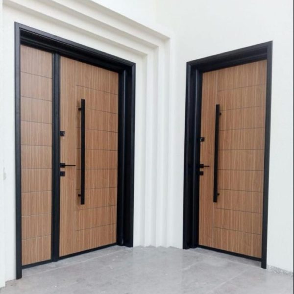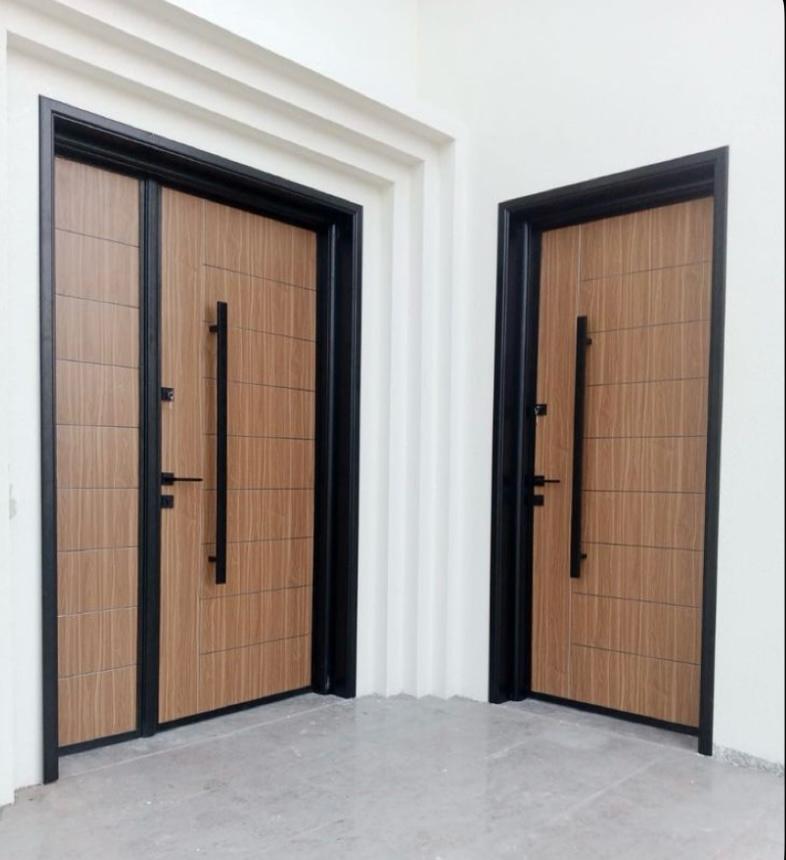 باب أمان معدني بكسوة خشبية (Steel Security Door with Wood Finish)